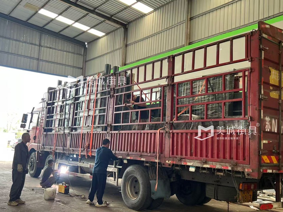 江蘇美城街具為新疆定制公交候車亭第五車發貨案例