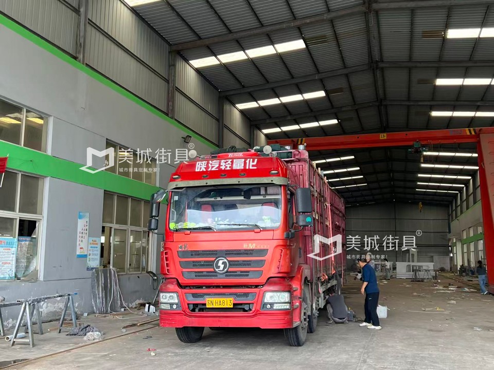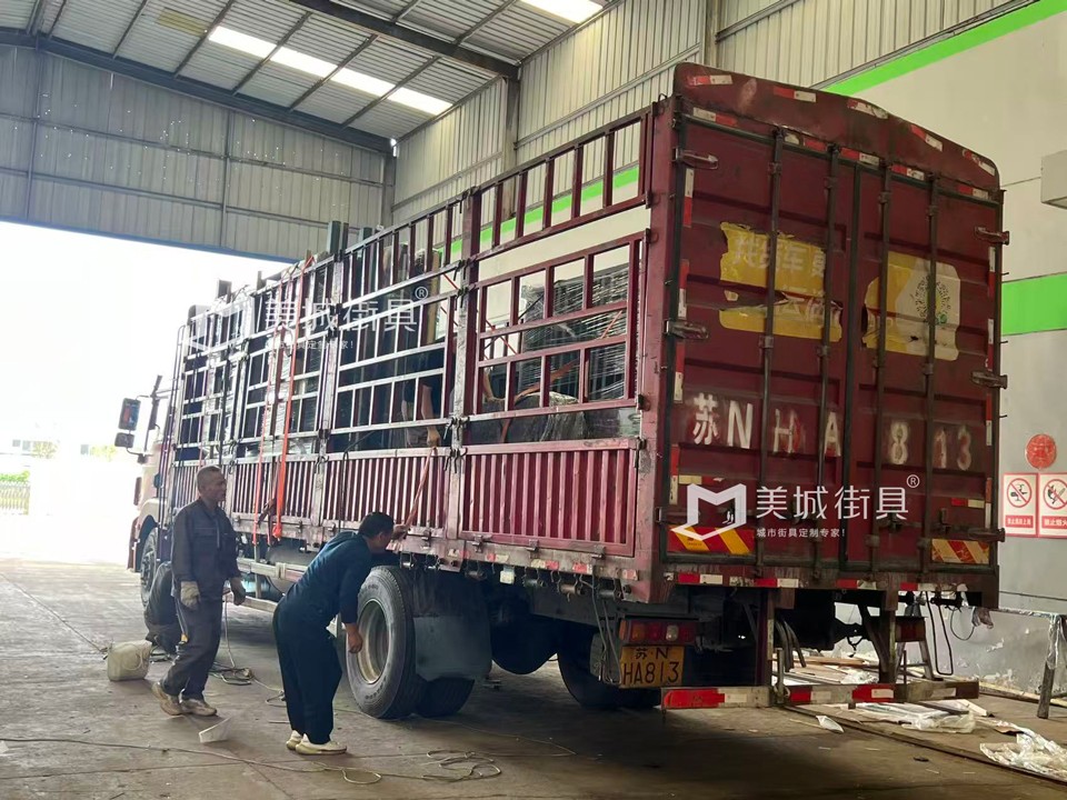 江蘇美城街具為新疆定制公交候車亭第五車發貨案例