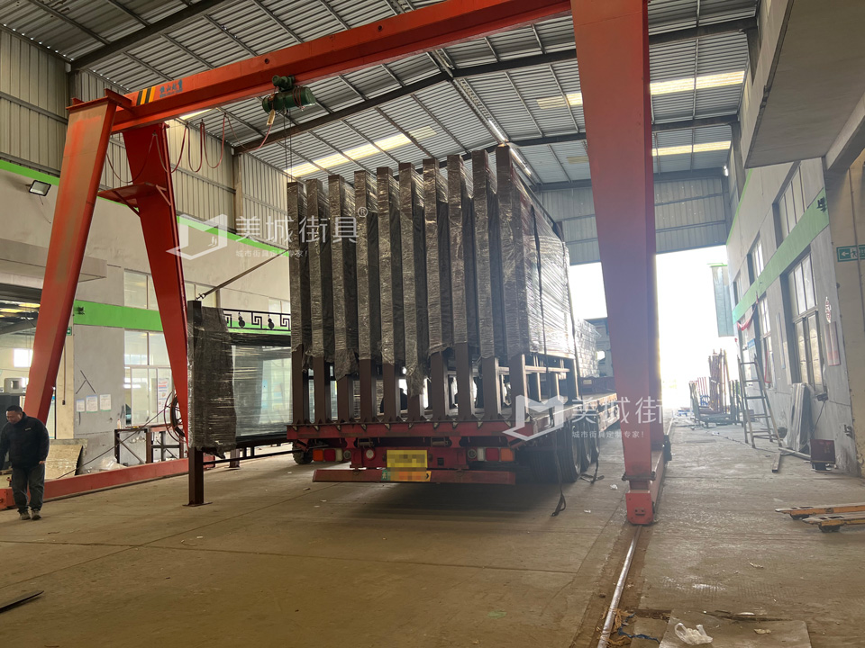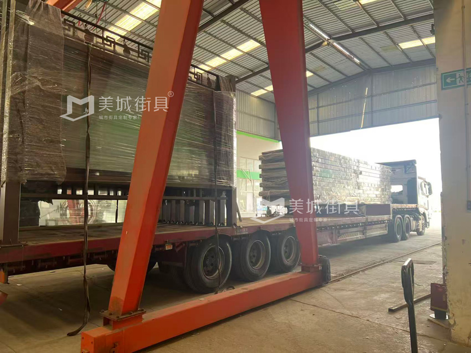 江蘇美城街具為新疆定制公交候車亭第五車發貨案例