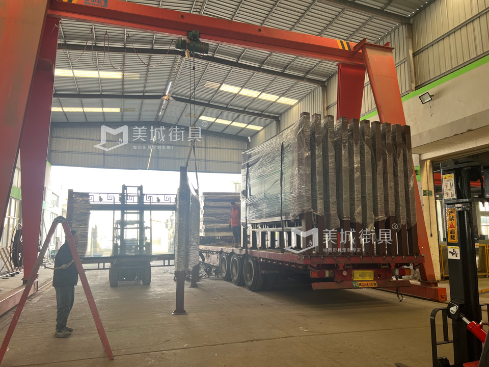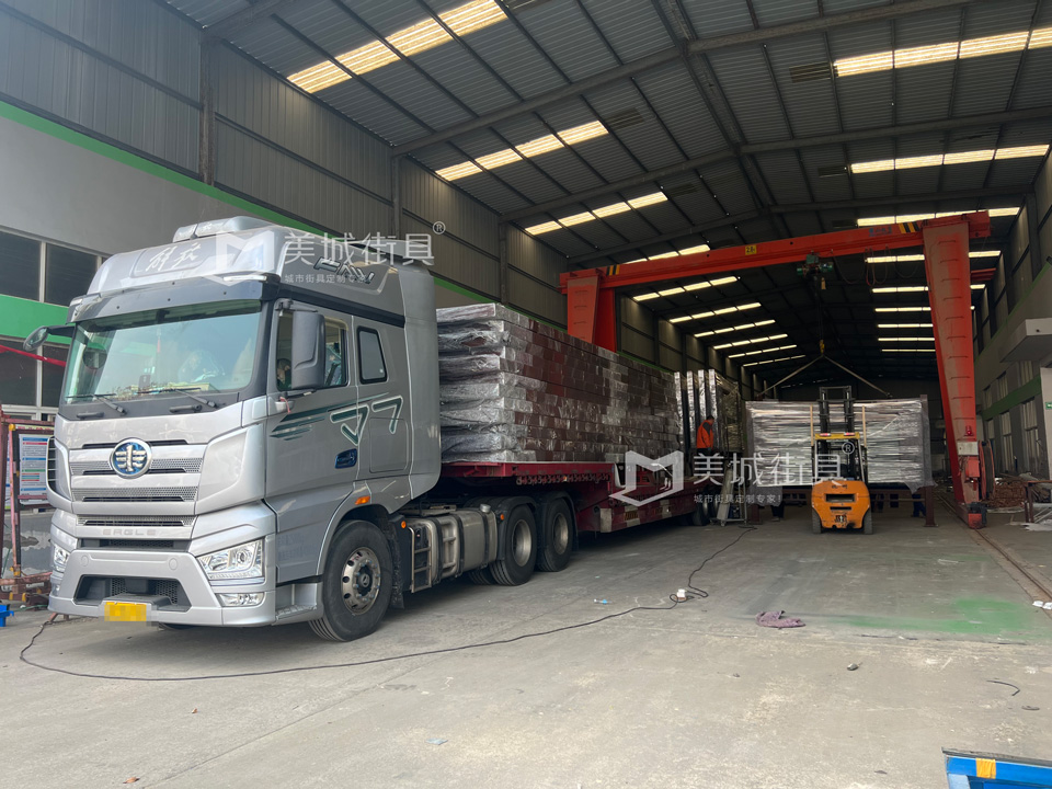 江蘇美城街具為新疆定制第六批候車亭公交站臺發貨案例